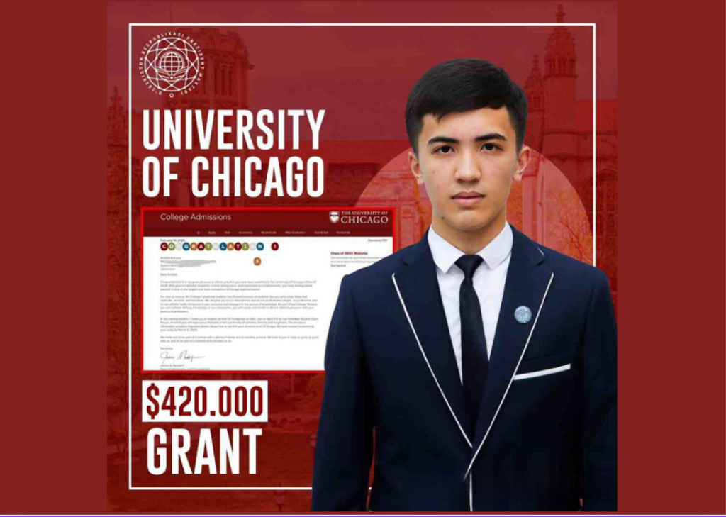Гулистон шаҳридаги Президент мактабининг 11-синф ўқувчиси Асилбек Ашуров дунёнинг энг нуфузли университетларидан бири бўлган АҚШдаги Чикаго университетида ўқиш учун 420 000 доллар миқдоридаги грантни қўлга киритди.