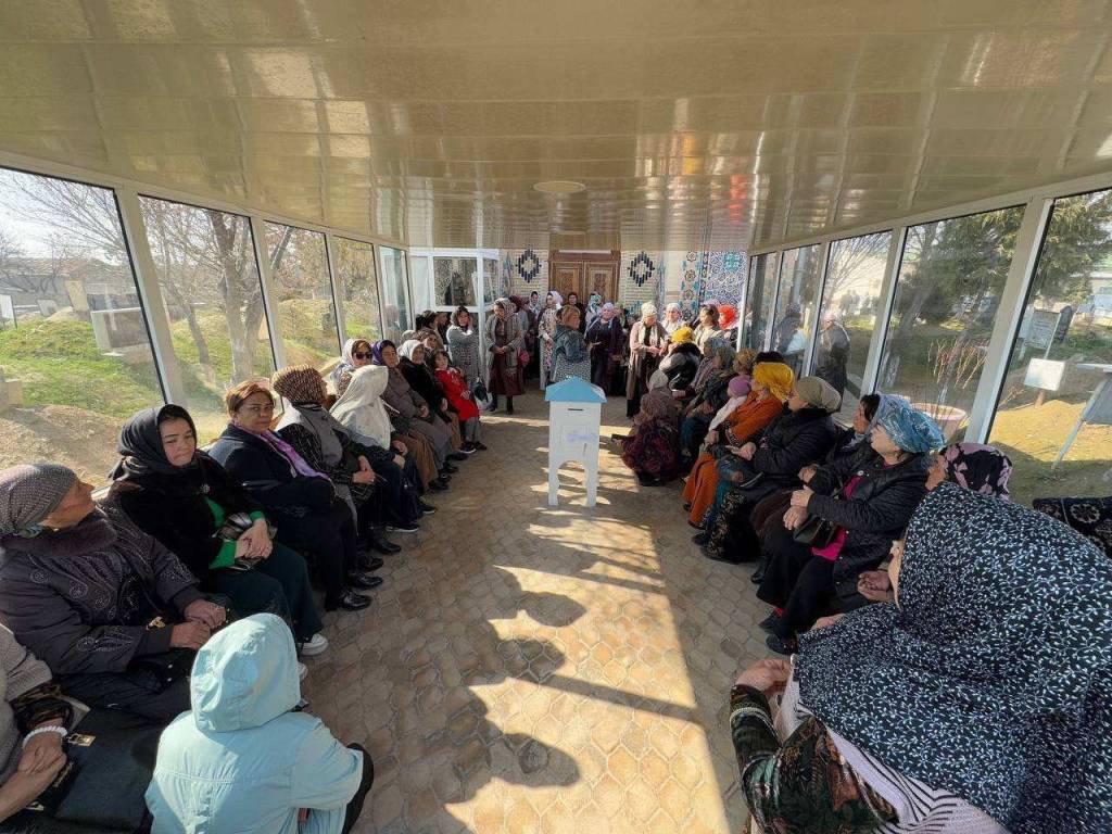 Ayollar iftorlik dasturxoni atrofida o‘tirib, yurtimizga, oilalarga tinchlik so‘rab duolar qilishdi.