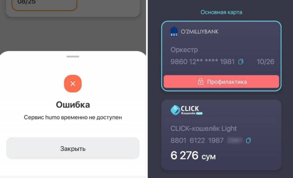 O‘zbekistondagi ayrim bank ilovalarida HUMO kartalari orqali to‘lov operatsiyalarini amalga oshirishda uzilishlar kuzatilmoqda.