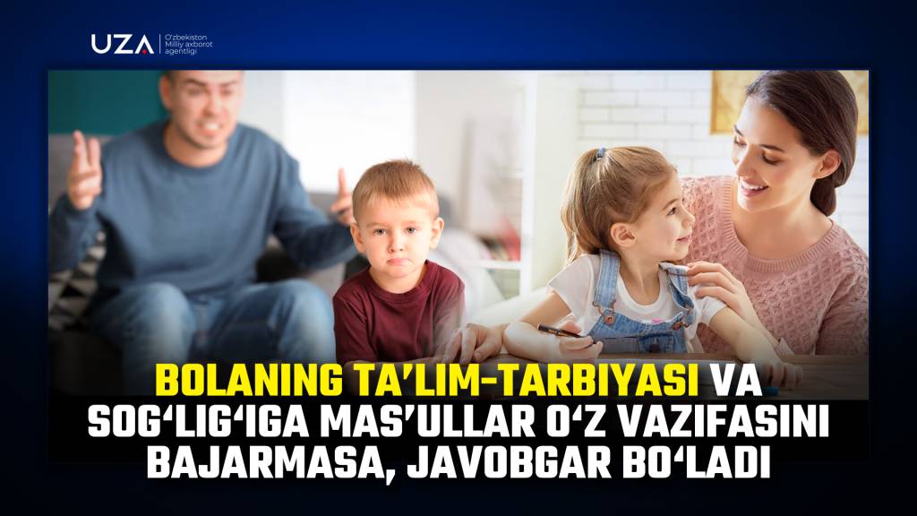 Shuningdek, bolaga tarbiya, ta’lim va tibbiy xizmat ko‘rsatish bo‘yicha mas’ul shaxs o‘z vazifasini bajarmasa, ma’muriy javobgarlik belgilanmoqda. Zimmasiga yuklatilgan majburiyatni lozim darajada bajarmagani uchun vasiylik, homiylik yoki tutingan ota-onalik vazifalarini bajarishdan chetlashtirilgan shaxslarga bolalar farzandlikka berilmasligi va ular vasiy yoki homiy etib tayinlanmasligi ko‘zda tutilmoqda.