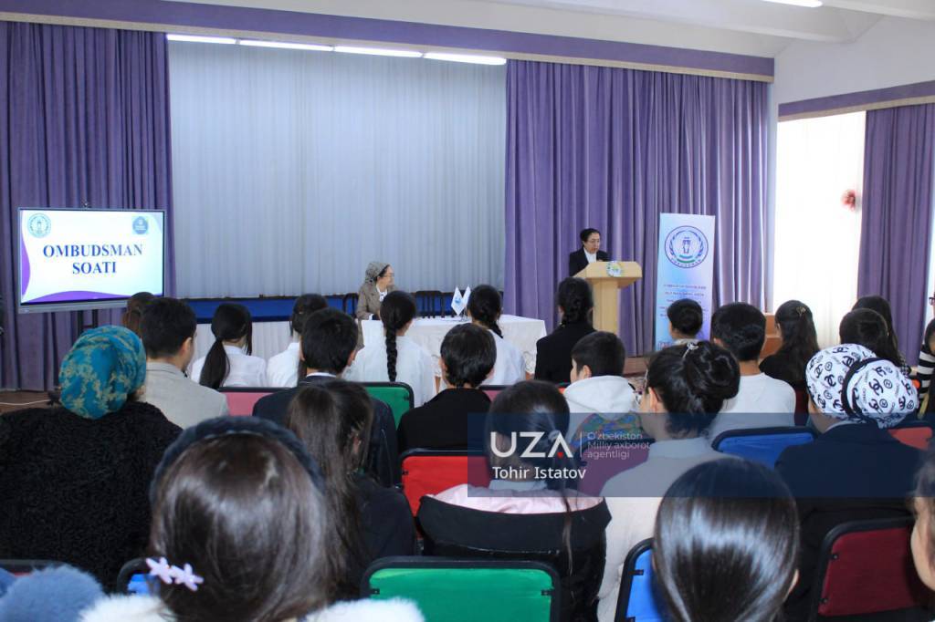 Ma’lumot uchun: O‘zbekiston Respublikasi Oliy Majlisi Inson huquqlari bo‘yicha vakili (ombudsman) va O‘zbekiston Respublikasi Maktabgacha va maktab ta’limi vazirligi tomonidan “Umumiy o‘rta ta’lim muassasalarida “Ombudsman soati” loyihasi doirasida yoshlarning inson huquqlari va erkinliklari sohasidagi xabardorligini oshirishga qaratilgan chora-tadbirlar ishlab chiqilgan.