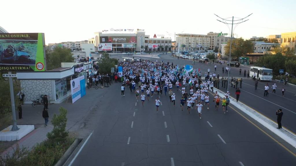 Dastlab O‘zbekiston Respublikasi Davlat madhiyasi yangradi. Shundan so‘ng “Bir vatanda, bir vaqtda, bir masofaga, bir maqsadda — birga yuguramiz!” shiori ostida tashkil etilgan ommaviy yugurish musobaqasi Buxoro shahridagi “Sitora” bolalar bog‘i oldidan start oldi. 7 yoshdan 70 yoshgacha bo‘lgan 6,5 mingga yaqin ishtirokchilar “Ark” qo‘rg‘onigacha bo‘lgan uch kilometr masofa bo‘ylab g‘oliblik va salomatlik uchun birga yugurdi.