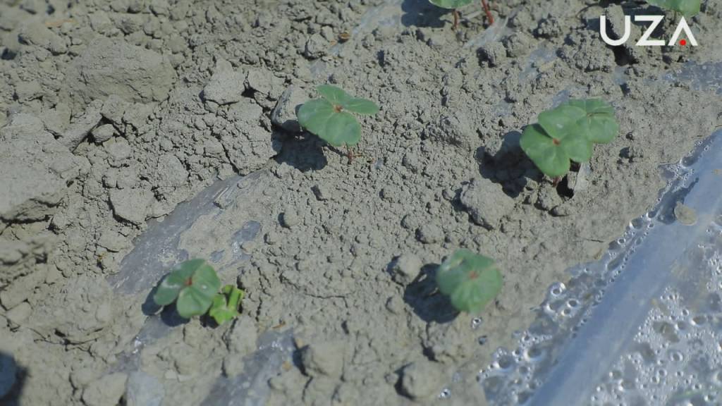 Бу майдонлар Данғара туманининг “Азия Премиум” масъулияти чекланган жамиятига қарашли. Уларга қўшқатор қилиб плёнка остига томчилатиб суғориш усулида чигит экилган эди. Майдон талаблар даражасида тайёрлангани, чигит сифатли экилгани учун ҳам ёш ниҳоллар плёнка остидан бош кўтариб икки- уч қулоқ кўрсатиб қолди.