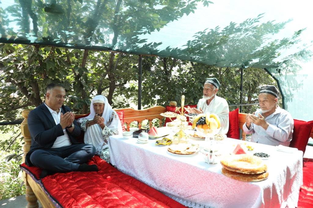 Viloyat hokimi onaxon bilan suhbat chog‘ida inson qadrini ulug‘lash Prezidentimiz siyosatining bosh maqsadlaridan biri ekanligini ta’kidlab, xususan, nuroniylar, keksa avlod vakillariga yuksak e’tibor va g‘amxo‘rlik ko‘rsatilayotganini ta’kidladi. 100 yoshdan oshgan nuroniylarning davlat mukofoti bilan taqdirlanishi ham ana shu e’zoz, hurmat ifodasi ekanligini qayd etdi.