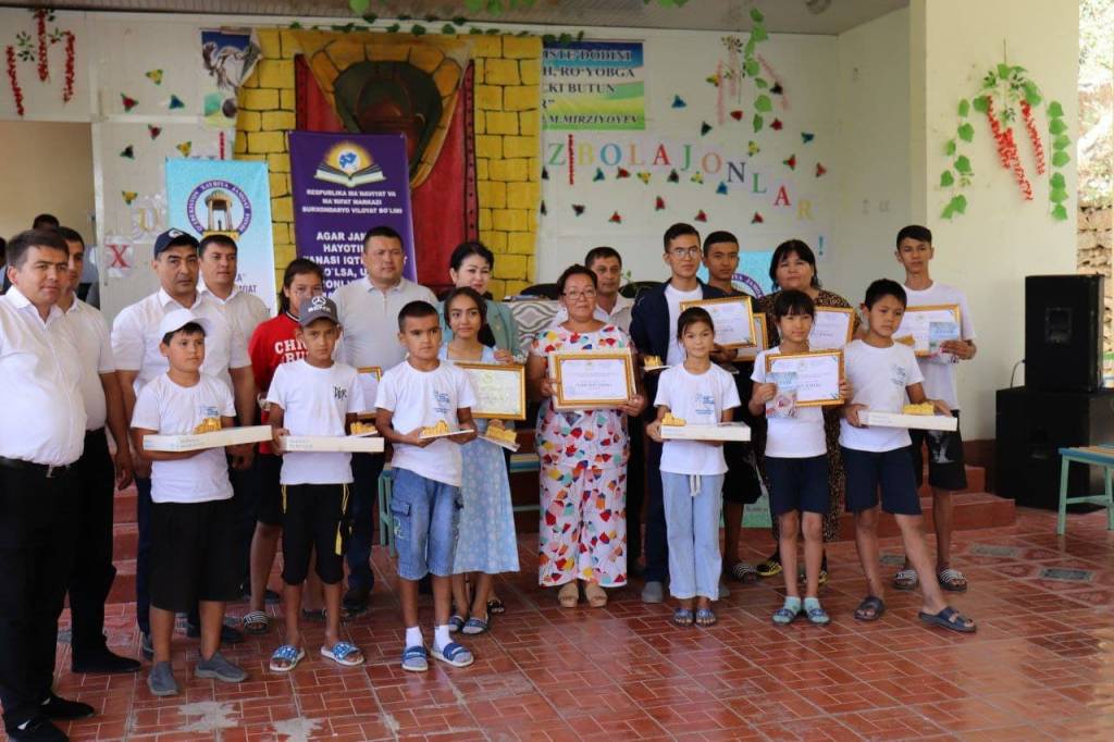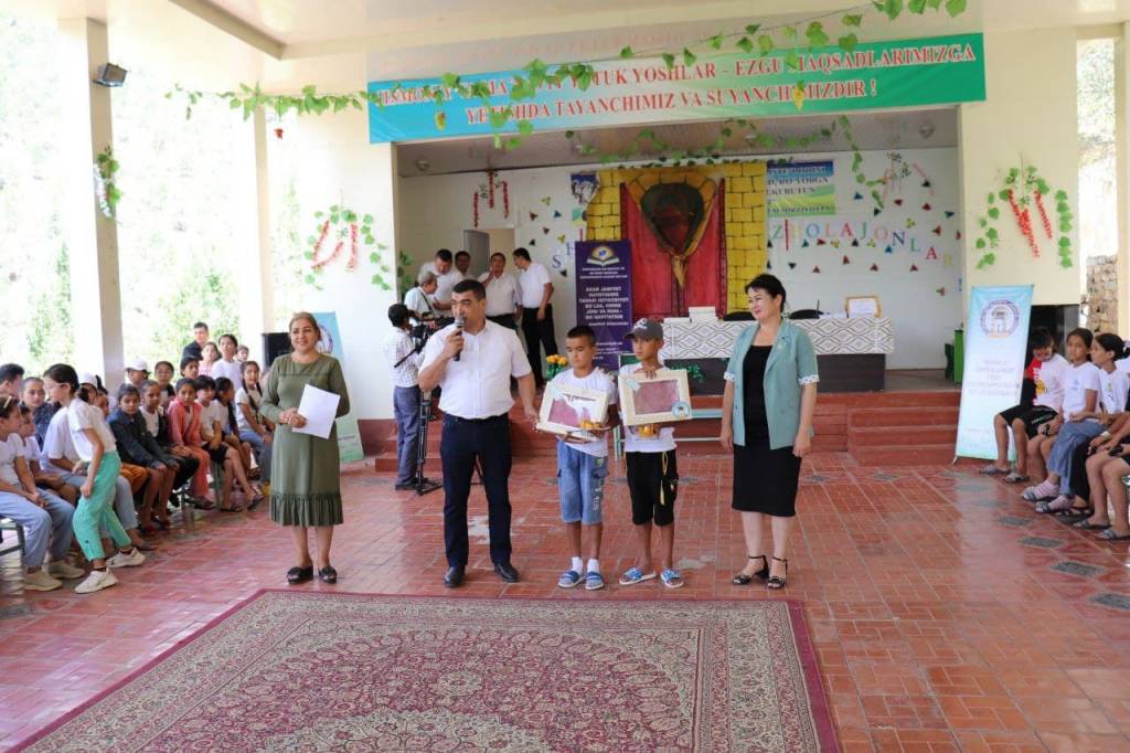Tadbirda faol ishtirok etgan bolajonlar “Mahalla” xayriya jamoat fondi va ma’naviyat-ma’rifat markazi viloyat bo‘limlarining esdalik sovg‘alari bilan taqdirlandi.