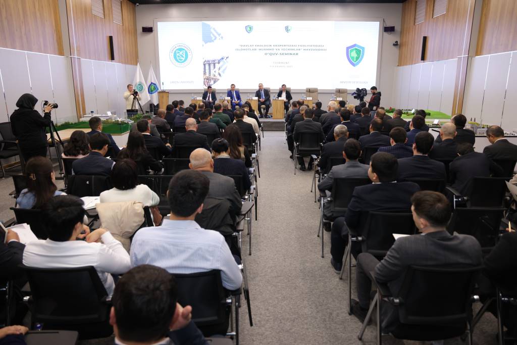 Markaziy Osiyo atrof-muhit va iqlim o‘zgarishini o‘rganish universiteti (Green University)da Ekologiya, atrof-muhitni muhofaza qilish va iqlim o‘zgarishi vazirligi huzuridagi Davlat ekologik ekspertizasi markazi tomonidan “Davlat ekologik ekspertizasi faoliyatidagi islohotlar: muammo va yechimlar” mavzusida o‘quv-seminari tashkil etildi.