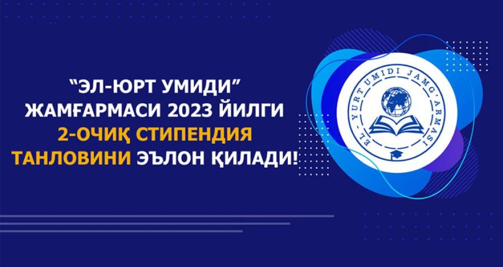 O‘zbekiston Respublikasi Prezidentining 2021 yil 11 fevraldagi “Davlat xizmatchilari va mutaxassislarni xorijda tayyorlash hamda ularning salohiyatini yanada oshirish tizimini tubdan takomillashtirish chora-tadbirlari to‘g‘risida”gi PF-6168-son Farmoni hamda “El-yurt umidi” jamg‘armasi Vasiylik kengashining 2023 yil 4 oktyabrdagi 9-son qaroriga asosan “El-yurt umidi” jamg‘armasi 2023 yilgi navbatdagi 2-ochiq stipendiya tanlovini e’lon qiladi.