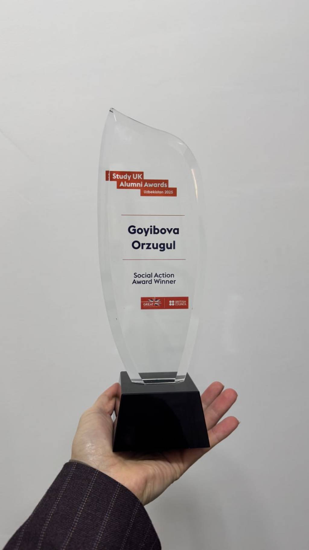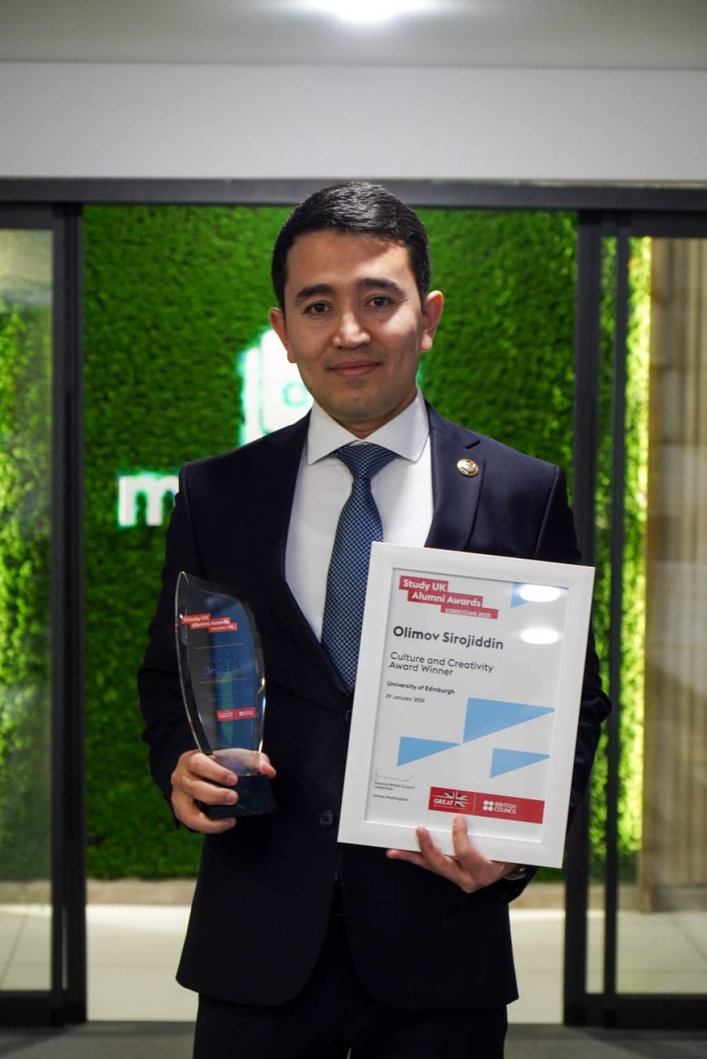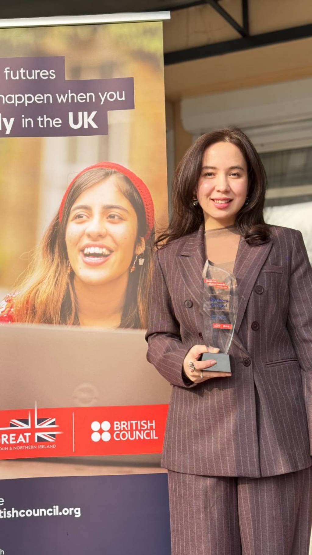“UK Study Alumni Award” – Buyuk Britaniyada ta’lim olgan bitiruvchilarga beriladigan nufuzli mukofot bo‘lib, o‘z sohasida katta yutuqlarga erishgan va jamiyatga ijobiy ta’sir ko‘rsatgan insonlarni e’tirof etadi. Bu sovrin butun dunyo bo‘ylab minglab nomzodlar orasidan eng ilg‘or bitiruvchilarni aniqlaydi. Mukofot toifalariga biznes va innovatsiyalar, madaniyat va ijodkorlik, fan va barqarorlik, ijtimoiy faoliyat kiradi.