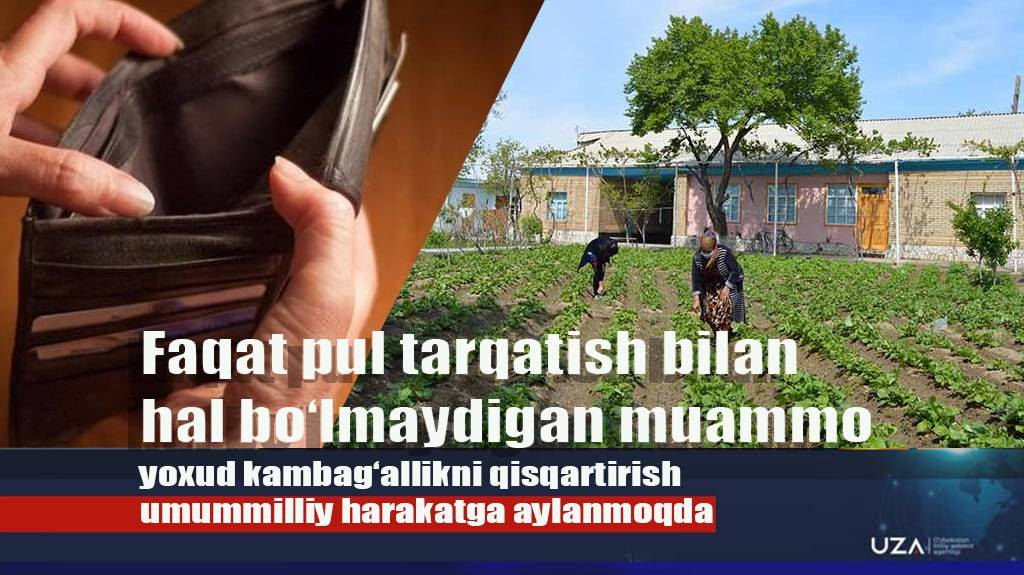 Darhaqiqat, mamlakatda kambag‘allikni qisqartirish bo‘yicha ko‘rilgan choralar ishlamoqda. Ular samarali bo‘lishi uchun tegishli hujjatlar va Prezident topshiriqlari ijrosi o‘z vaqtida amalga oshirilishi muhim. Shundagina mo‘ljal – kelgusi uch yilda kambag‘allik darajasini hozirgi 11 foizdan 7 foizga qisqartirishga erishiladi.