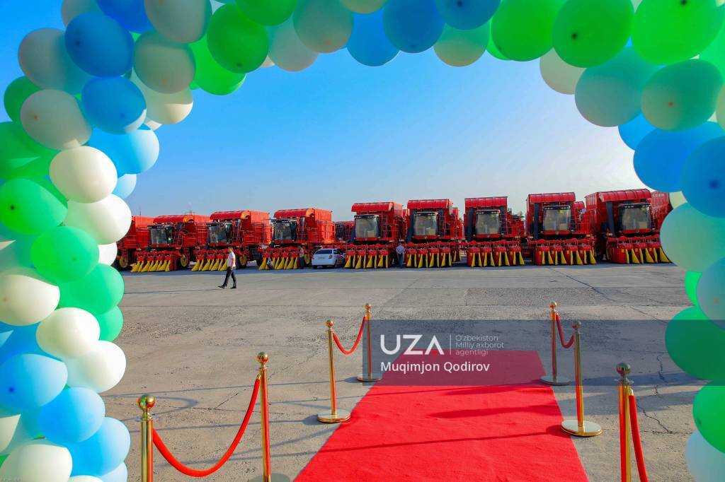 Фарғона шаҳридаги собиқ Механика заводи ҳудудида “Ferghana Swan Cotton Industrial Machinery Stock Co., Ltd” корхонасида ишлаб чиқарилган 128 та пахта териш машинаси вилоят фермерларига топширилди.