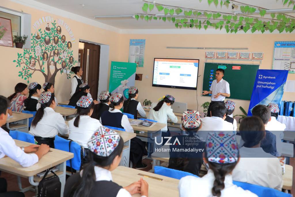 Ochiq dars davomida bank xodimlari tomonidan o‘quvchilarga moliyaviy savodxonlik mashg‘ulotlari o‘tkazildi. O‘quvchilarni qiziqtirgan savollariga javob qaytarildi.