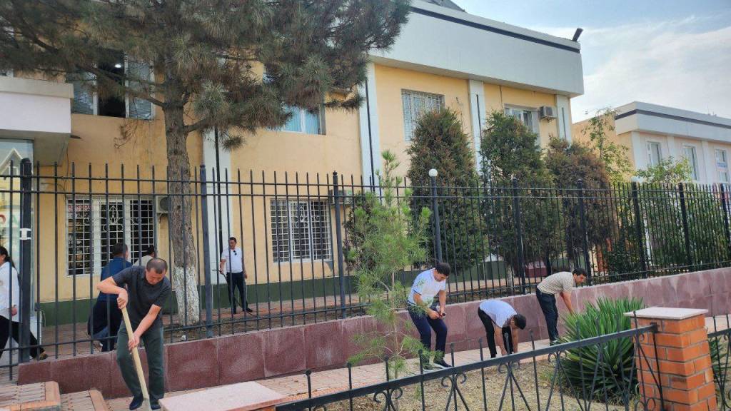 Eng ulug‘, eng aziz bayramimizning o‘ttiz to‘rt yilligi arafasida tashkil etilgan ikki kunlik hasharda “Vatan uchun, millat uchun, xalq uchun!” degan ulug‘vor g‘oyani diliga joy qilgan Byuro xodimlari tomonidan tashkilotlarning binosi va uning atroflari, hududlarda keng ko‘lamli ozodalik va ko‘kalamzorlashtirish ishlari amalga oshirildi. Qolaversa, nihol va gul ko‘chatlari o‘tqazilib, mavjud yashil hududlarga ham chiroyli ko‘rinish berildi.