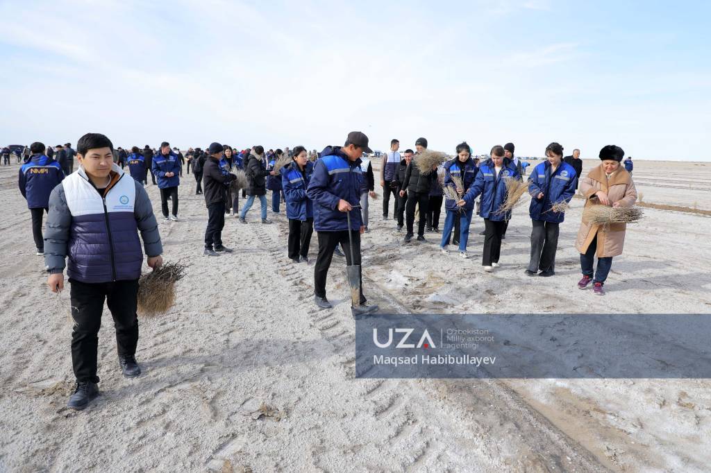 Ushbu ezgu ishlarda har yili respublika viloyatlaridan kelgan yordamchilar, O‘rmon xo‘jaligi agentligi, Favqulodda vaziyatlar, obodonlashtirish boshqarmalari xodimlari ishtirok etib, saksovul, cherkez, qandim kabi sho‘rga va qurg‘oqchilikka chidamli o‘simliklardan iborat “yashil qoplamalar” barpo etilmoqda. Saksovul ekish ishlarida uch avlod vakillari, deputatlar va mahalliy fuqarolar faollik ko‘rsatib, yurtimiz ekologiyasini yaxshilash yo‘lida o‘zlarining salmoqli hissasini qo‘shmoqda.