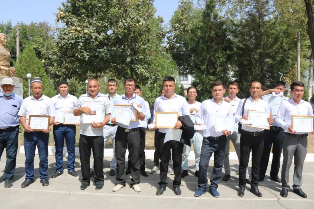 Tantanada so‘zga chiqqan viloyat Mehnat va bandlik boshqarmasi boshlig‘i o‘rinbosari Nurilla Mamatqulov, viloyat hokimining tashqi mehnat migratsiyasi masalalari bo‘yicha yordamchisi Sirojiddin Isroilov, “Qurilish sohasida malakali mutaxassislarni tayyorlash qisqa muddatli o‘quv markazi” direktori Mansur Do‘simbetovlar bitiruvchilarni tabriklab, kelgusi ishlarida muvaffaqiyat tiladi.