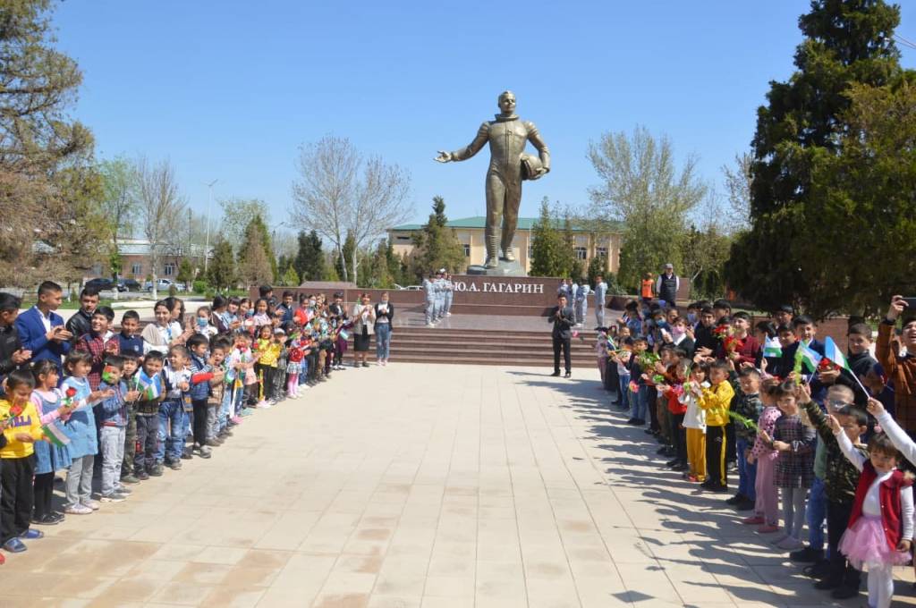 Shundan so‘ng tuman markazidagi birinchi maktabda xalqaro kosmonavtika kuniga bag‘ishlangan ma’rifiy tadbir bo‘lib o‘tdi. Tuman markazining Gagarin nomi bilan atalishi, shaharda birinchi kosmonavtga o‘rnatilgan haykal tarixi bo‘yicha yoshlarga batafsil ma’lumot berildi.