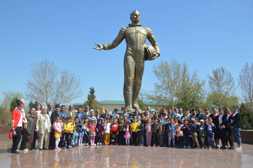 Bu yil shaharda xalqaro kosmonavtika kuniga bag‘ishlangan madaniy-ma’rifiy tadbirlar an’anaga ko‘ra jahoning birinchi fazogiri Yuriy Alekseyevich Gagarin haykali poyiga gullar qo‘yish bilan boshlandi.