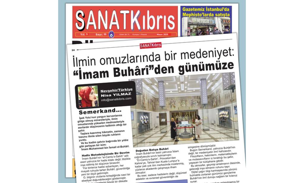 Turkiyada nashr etiladigan “SANATKıbrıs” gazetasining 2025 yil aprel oyidagi 50-sonida e’lon qilingan buyuk muhaddis Imom Buxoriy va uning ilmiy merosi haqidagi maqola shunday nomlandi.