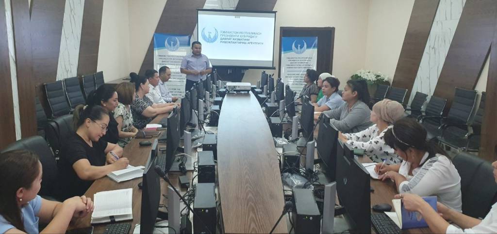 O‘zbekiston Respublikasi Prezidenti huzuridagi Davlat xizmatini rivojlantirish agentligi Navoiy viloyati filiali tomonidan viloyat sog‘liqni saqlash boshqarmasi bilan hamkorlikda sog‘liqni saqlash sohasida faoliyat yuritayotgan kadrlar xizmati xodimlari uchun o‘quv seminari tashkil etildi.