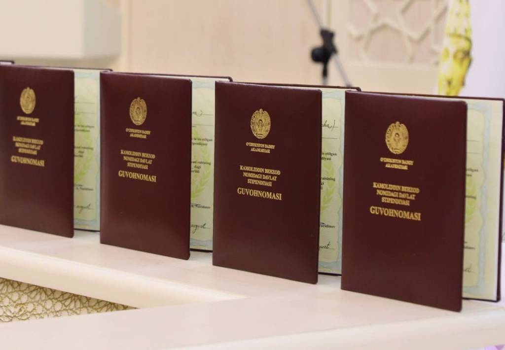 Kamoliddin Behzod nomidagi davlat stipendiyasi sohiblariga guvohnomalar O‘zbekiston Badiiy akademiyasi tomonidan tantanali ravishda topshirildi.