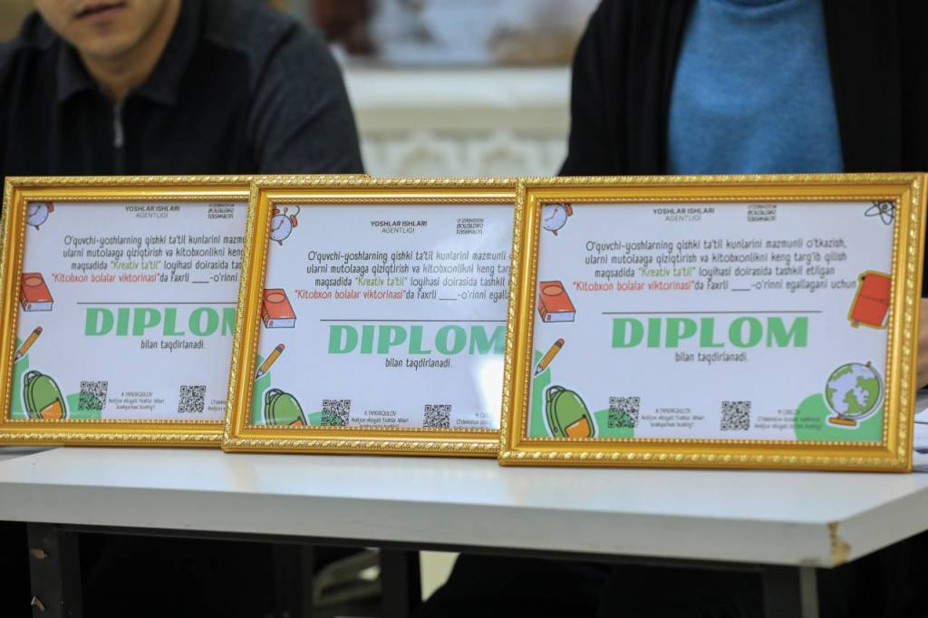 O‘quvchi yoshlar o‘rtasida kitobxonlikni targ‘ib etish, mutolaa madaniyatini oshirish, qolaversa, o‘quvchilarning qishki ta’tilini mazmunli o‘tkazish maqsadida Yoshlar ishlari agentligi hamda Maktabgacha va maktab ta’limi viloyat boshqarmalari hamkorligida “Kreativ ta’til” loyihasi doirasida o‘tkazilgan “Kitobxon bolalar” viktorinasida o‘quvchilardan tuzilgan jamoalar kitobxonlik borasidagi bilim va iqtidorlarini namoyish etdi.