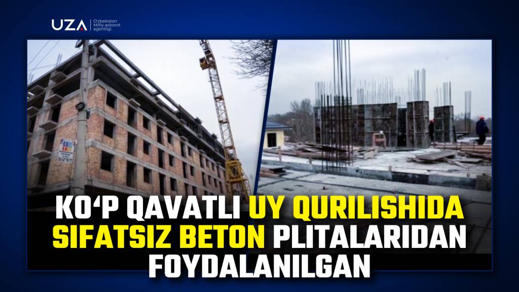 Xususan, Toshkent viloyati Qurilish va uy-joy kommunal xo‘jaligi sohasida hududiy nazorat qilish inspeksiyasi xodimlari tomonidan olib borilgan nazorat tadbirlari davomida viloyatning Chirchiq shahar Alisher Navoiy shoh ko‘chasi hududida qurilayotgan binoda sifatsiz qurilish materiallari, ya’ni temir beton plitalaridan foydalanilayotgani aniqlandi.