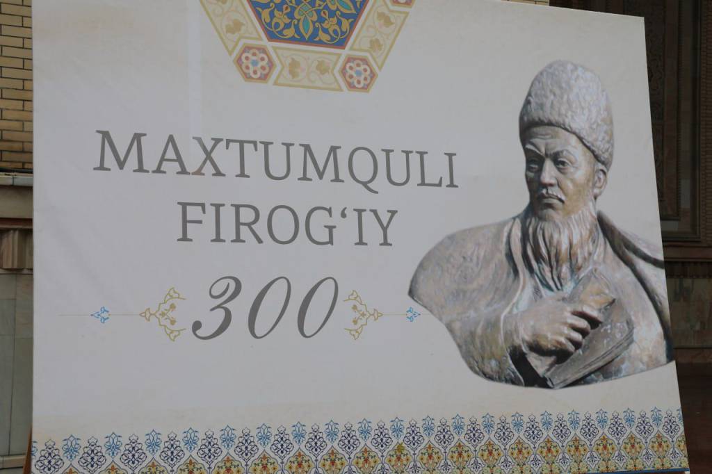 Alisher Navoiy nomidagi O‘zbekiston davlat akademik katta teatrida turkman shoiri va mutafakkiri Maxtumquli Firog‘iy tavalludining 300 yilligiga bag‘ishlangan tantanali adabiy-ma’rifiy xotira kechasi bo‘lib o‘tdi. Unda taniqli davlat va jamoat arboblari, diplomatik korpus vakillari, mehmonlar, yozuvchi-shoirlar, madaniyat va san’at namoyandalari, talaba va o‘quvchilar, keng jamoatchilik hamda ommaviy axborot vositalari vakillari ishtirok etdi.