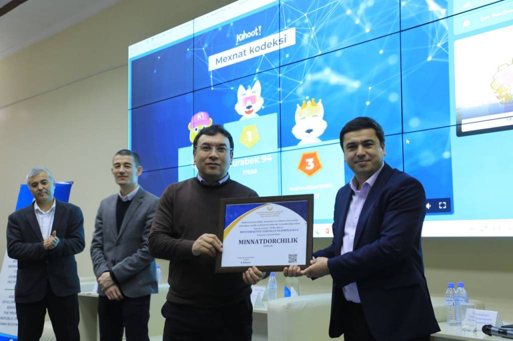 Interaktiv usulda tashkil etilgan amaliy seminar davomida ishtirokchilarga mehnat qonunchiligi bo‘yicha o‘z bilimlarini sinovdan o‘tkazish imkoniyati ham berildi.