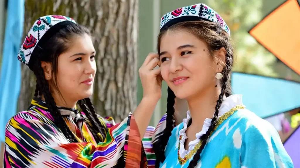 O‘zbek ayollari kiyimlarida esa adras, atlas va boshqa guldor matolardan keng foydalanilgan. Bayramona kiyimlar oltin yoki kumush rangli kashtalar bilan tikilgan. Bosh kiyimlari do‘ppi, sharf, salla kabilar hisoblanadi. Do‘ppi yosh o‘zbek ayollari va barcha erkaklar uchun birdek ommalashgan bo‘lib, nomi turkiy “tube” — “yuqori, tepa” deb tarjima qilinadi. O‘zbekistonning har bir viloyatida o‘ziga xos do‘ppi bo‘yi va naqshlari bor.