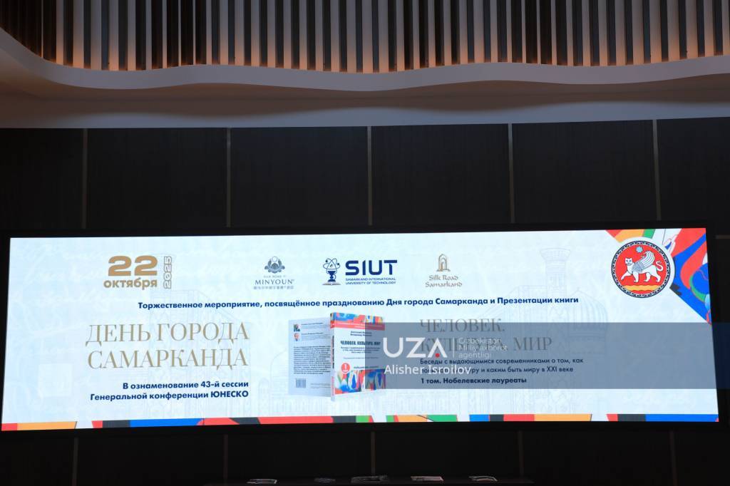 Samarqand shahrida YUNESKO Bosh konferensiyasining 43-sessiyasi munosabati bilan “Inson. Madaniyat. Tinchlik: madaniyatni anglash va XXI asrda hayotni idrok etish borasida taniqli zamondoshlar bilan suhbatlar” nomli to‘rt jildlik to‘plamning Nobel mukofoti sohiblariga bag‘ishlangan birinchi jildi taqdimoti o‘tkazildi.