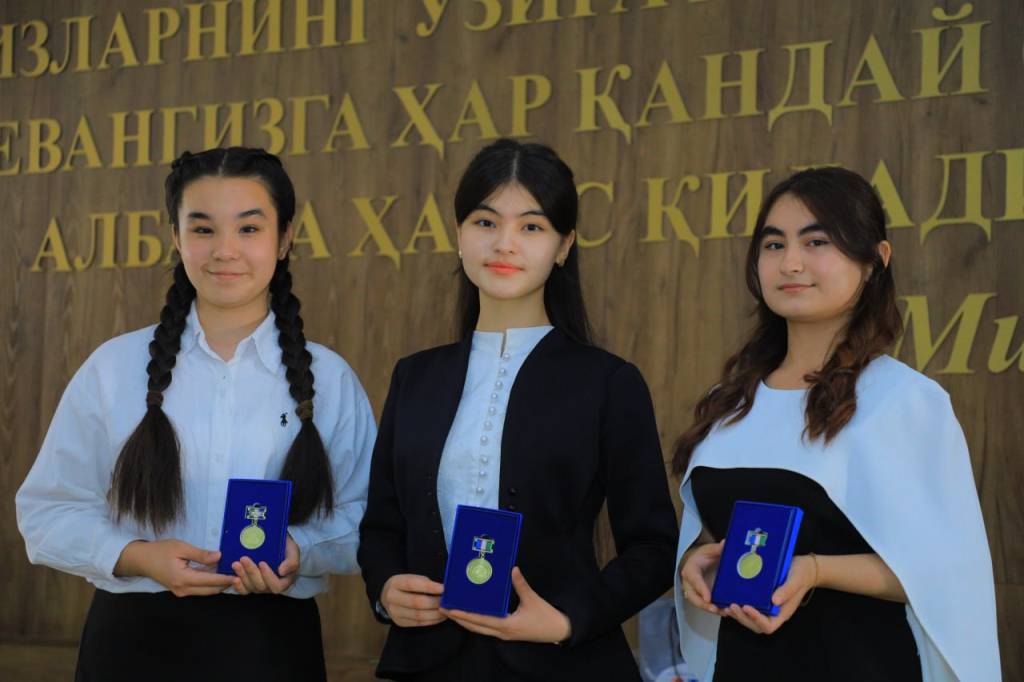 Tadbirda, namunali xulqi, odob-axloqi, ommaviy tadbirlarda faolligi bilan tengdoshlariga ibrat namunasini ko‘rsatgan 67 o‘quvchi oltin, besh bitiruvchi kumush medallar bilan taqdirlandi.