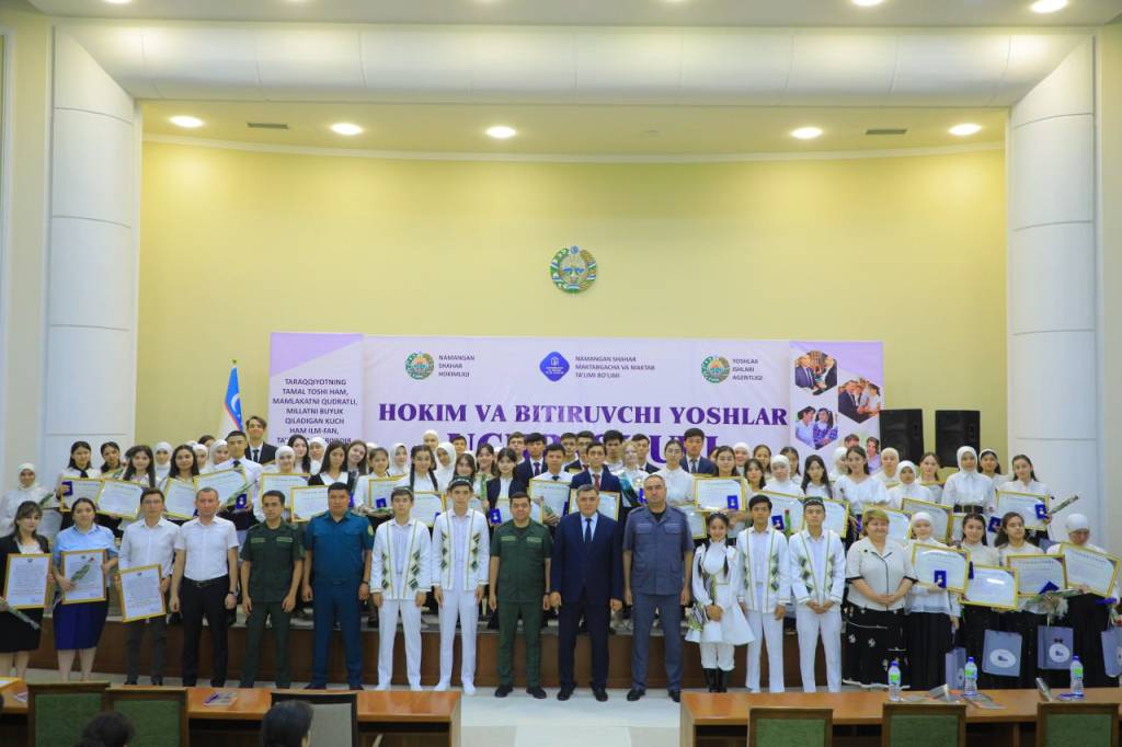 Shahar hokimligining katta majlislar zalida yakuniga yetgan 2024-2025 o‘quv yilini muvaffaqiyatli tamomlagan, kelajak sari ishonch bilan qadam qo‘yayotgan umumta’lim maktablari bitiruvchilarini taqdirlash marosimi ham ayni shu g‘amxo‘rlikning amaliy ifodasi bo‘ldi.
