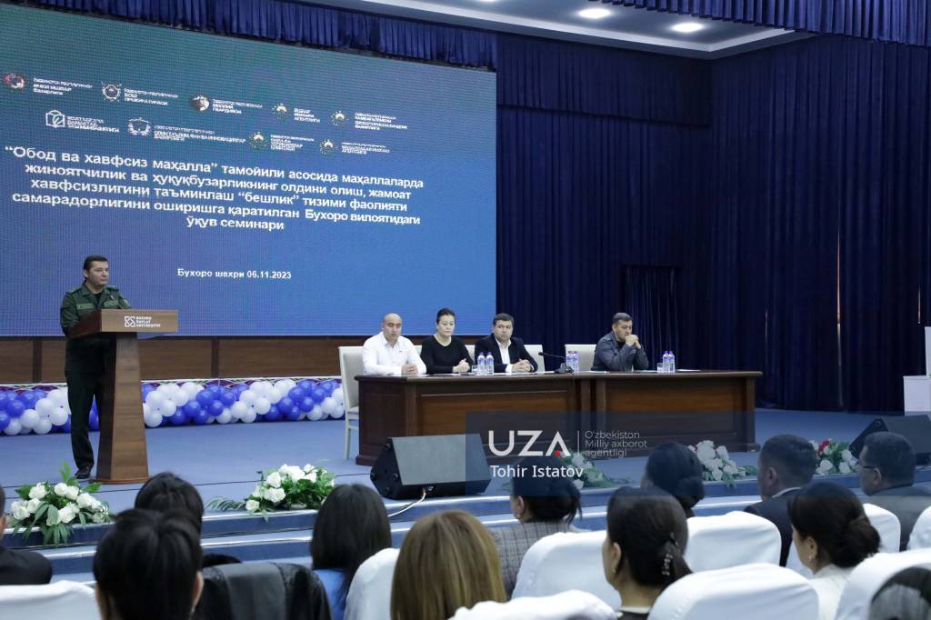 Buxoroda “Obod va xavfsiz mahalla” tamoyili asosida mahallalarda jinoyatchilik va huquqbuzarliklarning oldini olish, jamoat xavfsizligini ta’minlashda “mahalla beshligi” tizimi faoliyati samaradorligini oshirishga qaratilgan o‘quv-seminar tashkil etildi.
