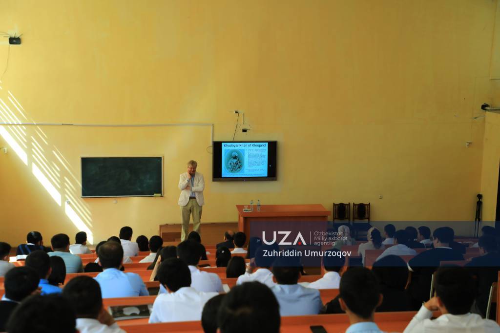Professor Aleksander Morrison universitet tarix fakultetining 3-4-bosqich talabalariga “O‘rta Osiyoning Rossiya imperiyasi tomonidan bosib olinishi” va “Markaziy Osiyoda ingliz-rus raqobati” mavzularida ma’ruza o‘qidi. Ma’ruza bo‘yicha o‘qituvchi va talabalarni qiziqtirgan savollarga javob qaytardi, mashg‘ulotlar olib borishdagi tajribalari bilan o‘rtoqlashdi.