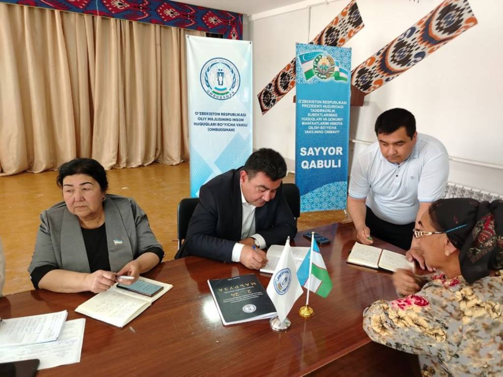 Aholining huquqiy savodxonligini oshirish, murojaatlar bilan ishlash borasida ham mintaqaviy vakil tomonidan muntazam tadbirlar, sayyor qabullar uyushtirilmoqda. Jumladan, viloyat hokimligi bilan hamkorlikda “Ombudsman maktabi” loyihasi doirasida chekka hududlarda o‘tkazilayotgan targ‘ibot tadbirlarida davlat organlarining faoliyati, qabul qilinayotgan qonunlar va boshqa normativ-huquqiy hujjatlar, aholiga yaratilayotgan imkoniyat va imtiyozlar xususida huquqiy tushuntirish berilmoqda. Ishtixon tumanida o‘tkazilgan shunday tadbirda fuqarolarning murojaatlari ham eshitilib, o‘nga yaqin masalaga shu yerning o‘zida yechim topildi.