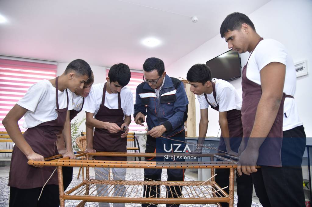 Кармана туманидаги 25-сонли ихтисослаштирилган мактаб-интернатида эса юқори синф ўқувчилари тол новдаларидан турли буюмлар тўқиш ва ратан маҳсулотларидан стол-стуллар ясаш сирларини ўрганмоқда.