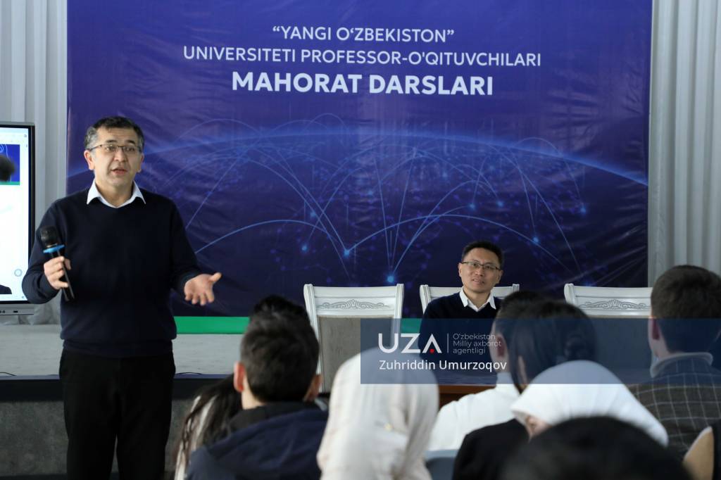 Andijonda “Yangi O‘zbekiston” universiteti professor-o‘qituvchilari tomonidan umumta’lim maktablari bitiruvchilari uchun mahorat darsi o‘tkazildi.