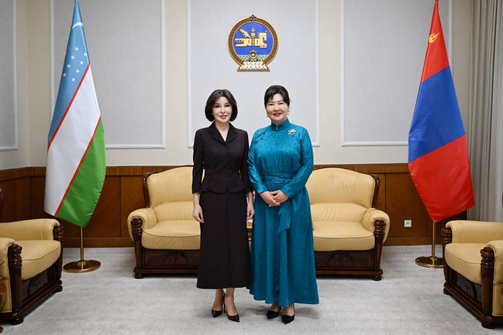 O‘zbekiston Respublikasi Prezidenti Shavkat Mirziyoyevning Mo‘g‘ulistonga davlat tashrifi doirasida Birinchi xonim Ziroat Mirziyoyeva va Mo‘g‘uliston Prezidentining rafiqasi Luvsandorj Bolorsetseg uchrashuv o‘tkazdilar.