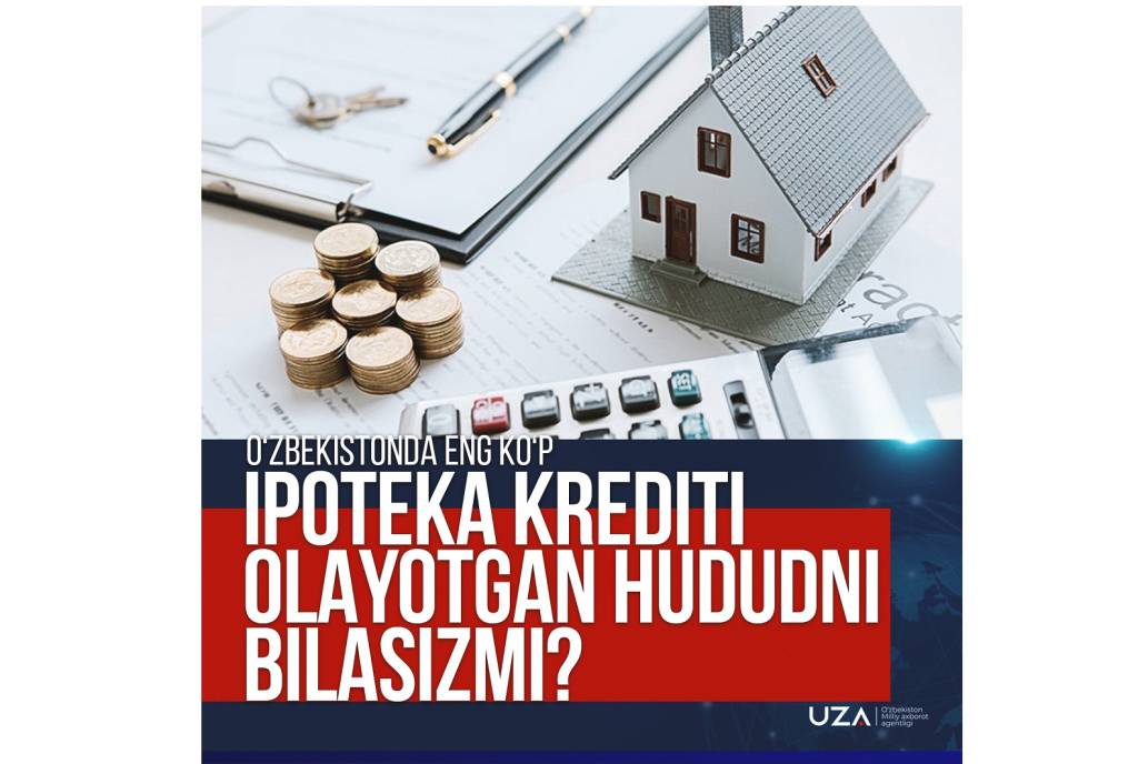 Hisob–kitoblarga ko‘ra, Oxirgi uch yil davomida Toshkent shahri aholisi boshqa hududlardagiga qaraganda eng ko‘p ipoteka kreditlari olgan. Masalan 2021 yilda poytaxt aholisi 2,6 trillion so‘m ipoteka kreditlari olishgan bo‘lsa, 2022 yilda bu ko‘rsatgich — 4,3 trillion so‘mni tashkil qilgan, 2023 yil hisobiga ko‘ra raqamlar 5 trillion so‘mni ko‘rsatayapdi.