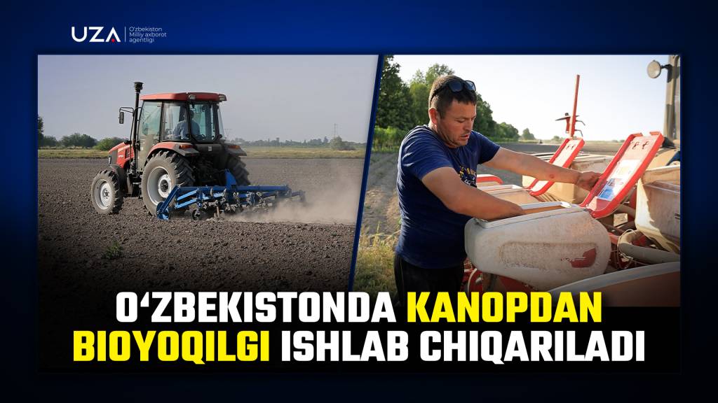 <iframe width="640" height="420" src="https://www.youtube.com/embed/aitxgRDazLk" title="O‘zbekistonda kanopdan bioyoqilg‘i ishlab chiqariladi" frameborder="0" allow="accelerometer; autoplay; clipboard-write; encrypted-media; gyroscope; picture-in-picture; web-share" referrerpolicy="strict-origin-when-cross-origin" allowfullscreen></iframe>Sanjar Toshpo‘latov, Ulug‘bek To‘xtayev (video), O‘zA