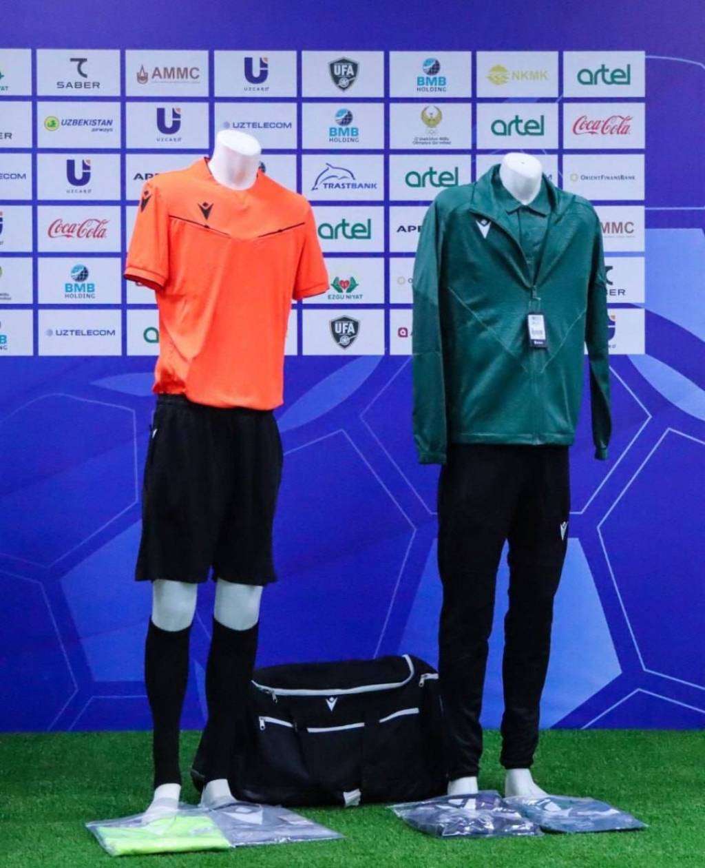O‘zbekistonda futbol bo‘yicha o‘tkaziladigan Superliga, Pro-liga, Birinchi liga, Ayollar Oliy ligasi uchrashuvlari, shuningdek, O‘zbekiston kubogi va mintaqaviy turnirlarda ish olib boradigan hakamlar Italiyaning “Macron” brendidagi liboslarda maydonda harakatlanadi.