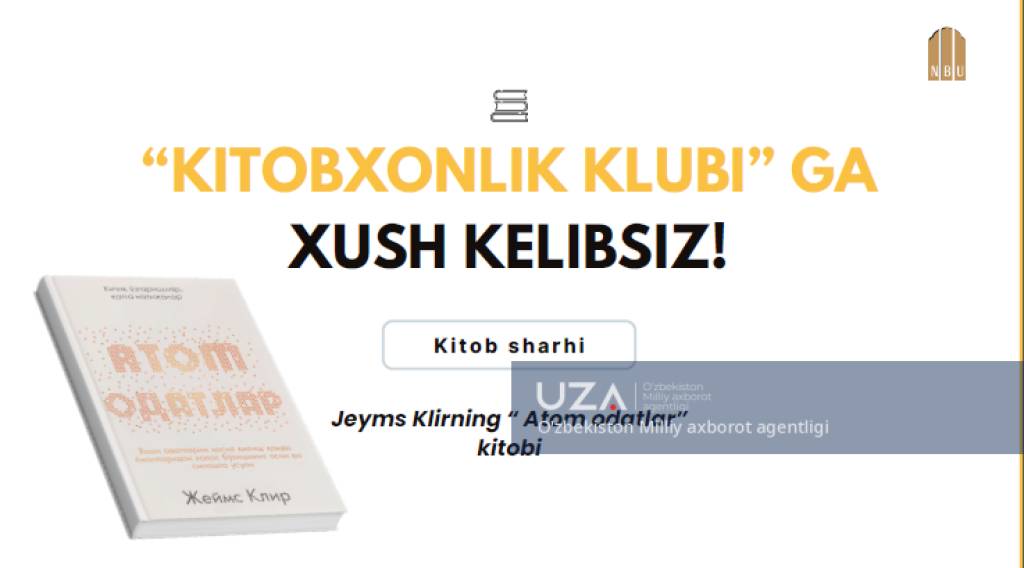 “O‘zmilliybank” AJ tomonidan xodimlarning ish vaqtidan tashqari bo‘lgan vaqtini yanada mazmunli o‘tkazishni ta’minlash, kasbga bo‘lgan mas’uliyatini oshirish hamda atrofdagilar bilan muloqot madaniyatini yuksaltirish maqsadida “Kitobxonlik klubi” tashkil etildi. Unda yilning har bir oyi uchun eng sara asarlar tanlab olinib, kitobxon xodimlar o‘rtasida oyning oxirgi juma kunlarida onlayn platforma orqali muhokama o‘tkazilmoqda. Yanvar oyining tanlangan asari sifatida mutolaa etilayotgan “Atom odatlar” kitobi bank xodimlarida yuqoridagi singari ijobiy taassurotlarni uyg‘otayotgani bilan ahamiyatli, bo‘ldi deyish mumkin.