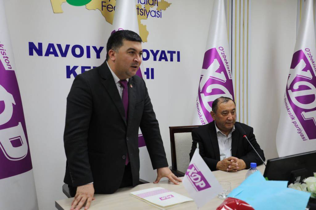 O‘zbekiston kasaba uyushmalari Federatsiyasi Navoiy viloyat Kengashi majlislar zalida O‘zbekiston Xalq demokratik partiyasi tashkil topganligining 34 yilligi munosabati bilan tadbir tashkil etildi.