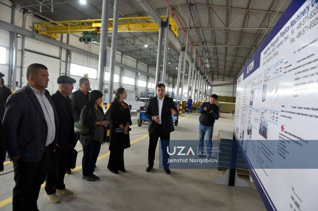 Ishtirokchilar dastlab sendvich panellari va profnastil ishlab chiqarishga ixtisoslashgan “Alptom” korxonasi faoliyati bilan tanishdi.