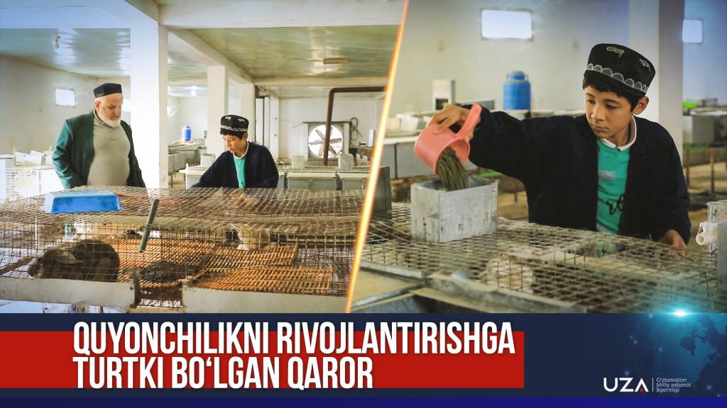 <iframe width="650" height="420" src="https://www.youtube.com/embed/2sgUvWciD7E" title="Quyonchilikni rivojlantirishga turtki boʻlgan qaror" frameborder="0" allow="accelerometer; autoplay; clipboard-write; encrypted-media; gyroscope; picture-in-picture; web-share" referrerpolicy="strict-origin-when-cross-origin" allowfullscreen></iframe>Sanjar Toshpo‘latov, Doniyor Yakubov, Anvar Ahmedov (video), O‘zA