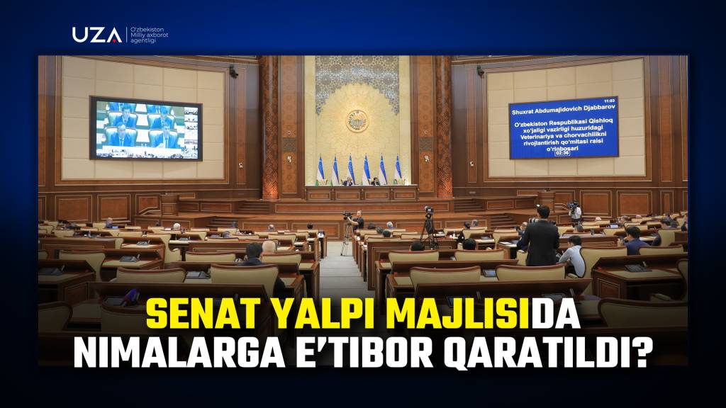 <iframe width="650" height="420" src="https://www.youtube.com/embed/HZ2sor6ohvY" title="Senatyalpi majlisida nimalarga e’tibor qaratildi?" frameborder="0" allow="accelerometer; autoplay; clipboard-write; encrypted-media; gyroscope; picture-in-picture; web-share" referrerpolicy="strict-origin-when-cross-origin" allowfullscreen></iframe>Norgul Abduraimova, Doniyor Yoqubov (video), Anvar Ahmedov (montaj), O‘zA