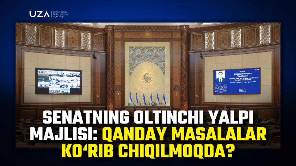 O‘zbekiston Respublikasi Oliy Majlisi Senatining oltinchi yalpi majlisi o‘z ishini boshladi. Unda Senat va Hukumat a’zolari, vazirlik va idoralar rahbarlari, ommaviy axborot vositalari vakillari ishtirok etdi.