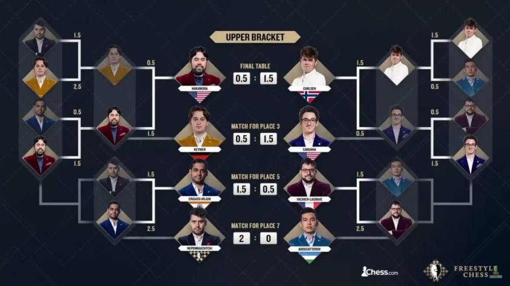 Кеча сўнгги тур ўйинларининг финал баҳсида норвегиялик Магнус Карлсен америкалик Хикару Накамуру билан дуранг ўйнади ва бир кун олдинги ғалабаси эвазига 1,5:0,5 ҳисобида 1-ўринни эгаллади.