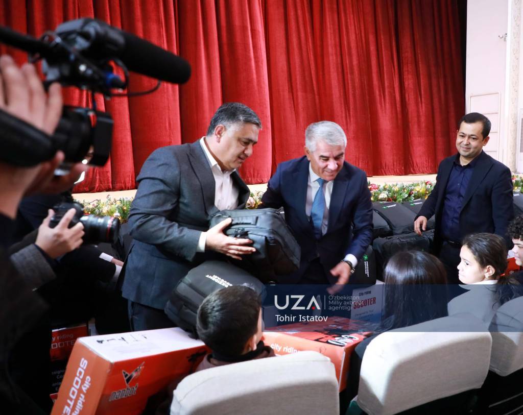 Yurtboshimizning kelajagimiz egalariga ko‘rsatayotgan g‘amxo‘rligining yorqin ifodasini o‘zida namoyon etgan tadbirda viloyat hokimi Botir Zaripov so‘zga chiqib, Prezidentimizning bolajonlarga yo‘llagan Yangi yil bayram tabrigini o‘qib berdi. Bolalarga “Prezident sovg‘alari” topshirildi. O‘quv qurollari va shirinliklardan iborat tuhfadan o‘g‘il-qizlarning ko‘ngli shod bo‘ldi. Viloyatdagi 597 nafar bolaga mo‘ljallangan “Prezident sovg‘asi” tarkibiga O‘zbekiston Respublikasi Prezidentining bolalarga yo‘llangan Yangi yil bayrami tabrigi, 15 turdagi shirinliklar, 12 nomdagi o‘quv qurollari, yumshoq o‘yinchoqlar va boshqa sovg‘alar kiritilgan. Shuningdek, 12 yoshdan katta tarbiyalanuvchilar uchun tayyorlangan sovg‘alar tarkibidan velosiped va samokatlar ham o‘rin olgan.