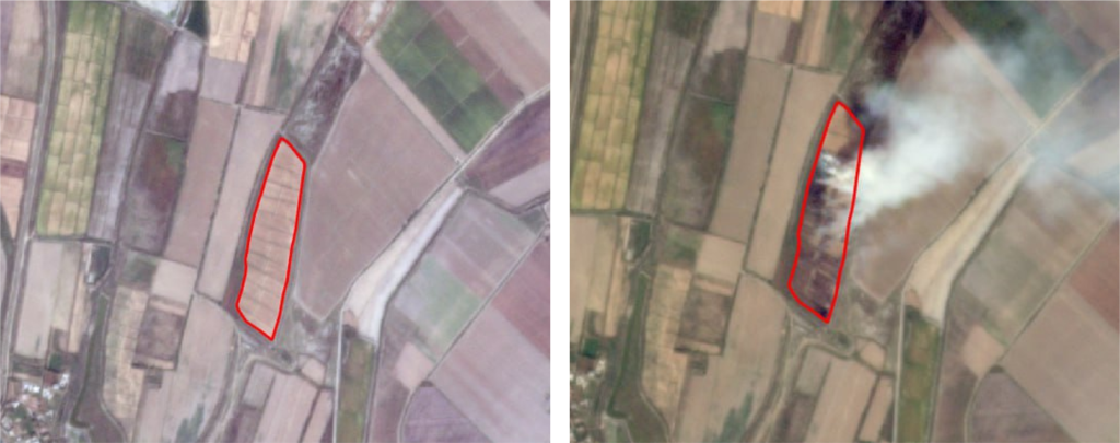 “O‘zbekkosmos” agentligi tomonidan olib borilgan tahlillarga ko‘ra, ayni vaqtda mamlakatimizdagi sholi hosilidan bo‘shagan dalalarda qoldiqlarni noqonuniy yoqib yuborish bilan bog‘liq 38 ta holat aniqlanib, 500,3 gektar maydon zarar ko‘rgan. Bu Sirdaryo (30 ta holat 421,9 gektar) va Toshkent viloyati (8 ta holat 78,4 gektar) hududlariga to‘g‘ri kelmoqda.