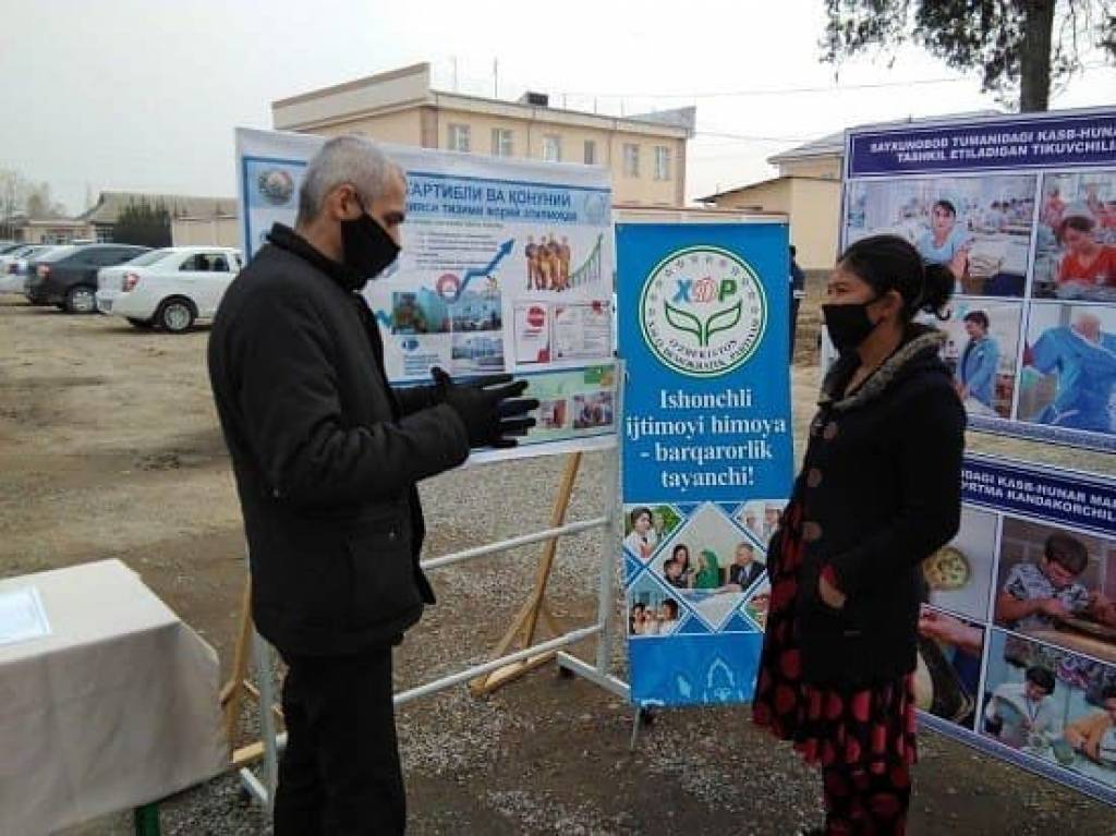 Yarmarkada 413 nafar ishsiz sifatida ro‘yhatga olingan aliment to‘lovchilar hamda tumandagi band bo‘lgan xotin-qizlar qatnashdi. Unda tumandagi 50 ta korxona va tashkilotlar 401 ta bo‘sh ish o‘rni bilan ishtirok etdi va 18 nafar ishsiz aliment to‘lovchilariga ishsizlik nafaqasi tayinlandi. Bundan tashqari, 48 nafar fuqarolar yarmarkaning o‘zida ishga joylashtirilgan bo‘lsa, 38 nafarining ishga joylashishlari uchun yo‘llanmalar berildi.